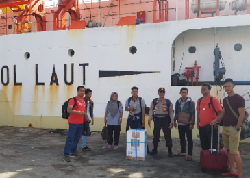 Kapolsek Tambelan, saat di Kapal Tol Laut sanbil menjaga ketat kotak suara