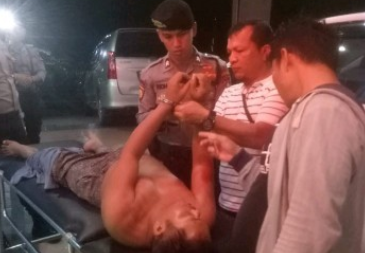 Unit Jatanras Polres Tanjungpinang, saat menggiring pelaku perampokan yang ditembak
