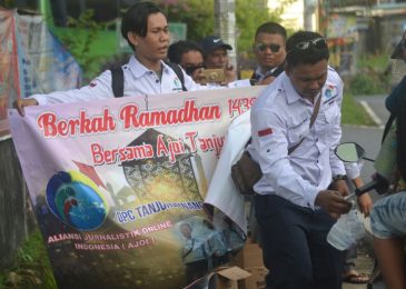 Dengan membagikan ratusan bungkus makanan siap saji untuk berbuka, secara gratis. Anggota Aliansi Jurnalistik Online Indonesia ( AJOI ) Kota Tanjungpinang, memberikannya dengan senyum ramah pada setiap pengendara.