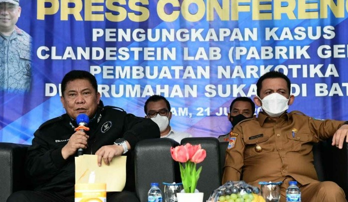 Hal tersebut disampaikan oleh Kepala BNN Republik Indonesia Komisaris Jenderal Polisi (Komjen) Petrus Reinhard Golose saat Press Conference Pengungkapan Kasus Clandestein Lab (Pabrik Gelap) Pembuatan Narkotika di Perumahan Sukajadi Batam, Kamis (21/07).