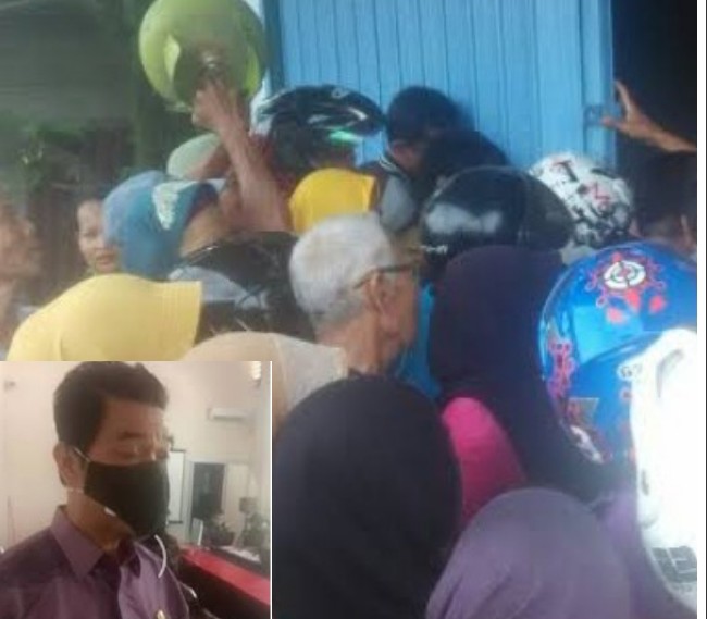 Foto: Ilustrasi Kadisperdagin TPI, A Yani di samping Emak-amak saat menunggu antrian Gas Elpiji 3 kg