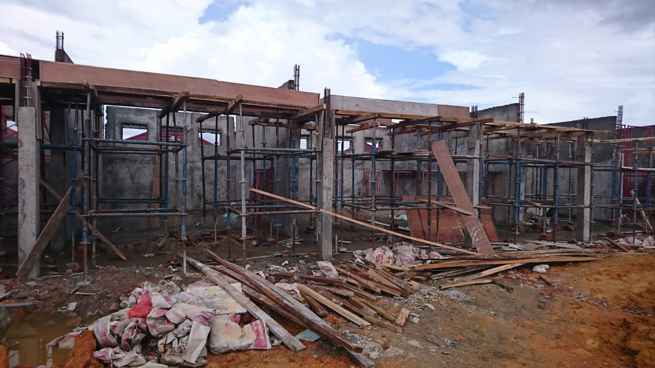 Dugaan Penyusunan Batu Rinding Gedung tidak Memakai Balok Penyatu Ketiang
