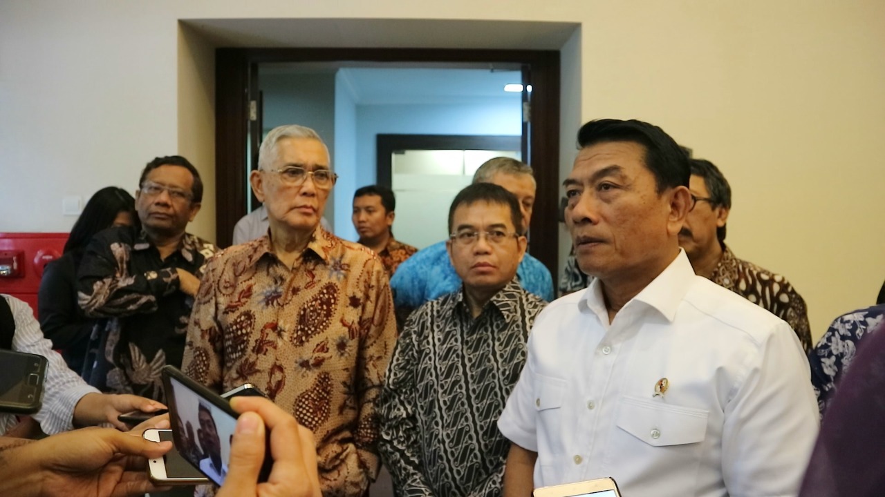 usai pertemuan.”Moeldoko” dengan Unit Kerja Presiden Pembinaan Ideologi Pancasila (UKP-PIP) di Kantor Staf Presiden, Jakarta, Rabu, 14 -02′-2018 turut hadir dalam pertemuan itu Kepala UKP-PIP Yudi Latief, .anggota Dewan Pengarah, antara lain Jenderal (Purn) Try Sutrisno, Dr.Mahfud MD, dan Pdt. Andreas Anangguru Yewanggoe dan anggota Dewan Penasihat Benny Susetyo, Pr, dan Sudhamek AWS.