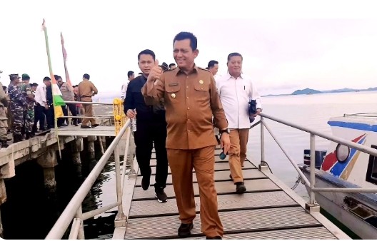 Usai meresmikan jalan Trans Batubi-Klarik, barulah Gubernur dan rombongan nyebrang ke Sedanau untuk meresmikan dermaga apung/Ponton HDPE.