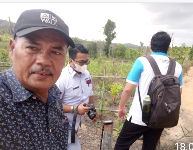 Dibantu RT Lome dan Satpam PT BMW, Pihak DLHK Kepri beserta PolHut melakukan penyisiran satu persatu mengambil titik-titik kordinat di lokasi lahan-lahan yang di kelola oleh para petani.