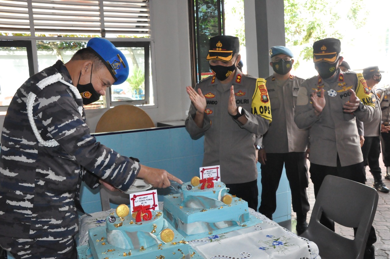 Investigasipos.com | Tanjungpinang – Kapolres Tanjungpinang AKBP FERNANDO SH, SIK beserta Pejabat Utama Polres Tanjungpinang dan jajaran berikan kejutan dalam rangka HUT POMAL Ke-75 Tahun 2021 di Markas Komando Polisi Militer Lantamal IV Tanjungpinang, Sabtu (20/02/2021).