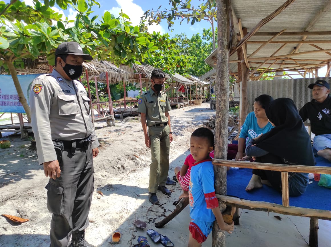 Foto: Personil Polres TPI Imbau Masyarakat Patuhi Prokes saat di Objek Wisata